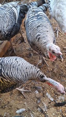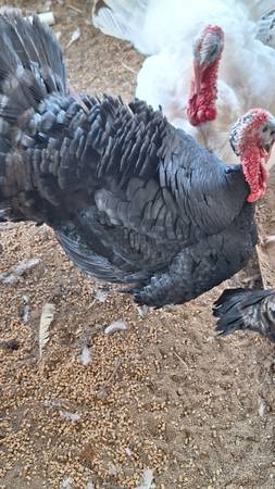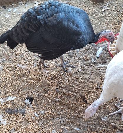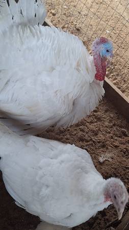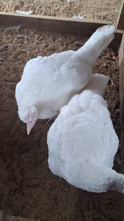 I have 4 buff cochin bantam roosters. 3 buff brahma bantams roosters. 3 white face black spanish bantam roosters. 7 hens of different breeds. 3 cayuga ducks (breeding group). 4 rouen ducks (breeding group). 2 black spanish male turkeys. 2 Narragansett male turkeys. 5 white broad brested turkeys. 3 midget white (breeding group). 1 new holland female turkey. $725 or best offer for all. Could sell individually except (breeding groups). Prices for individuals will be firm.