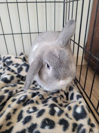 Very sweet 8 month old Holland lop buck. He has been in my house since he was born. He is crate trained. I have a crate that go with him for an extra $35. Text 719- four, five, eight-9665