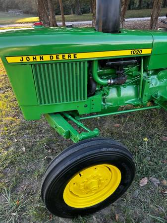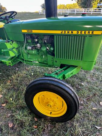 1971 John Deere 1020. Powered by a 3 cylinder gas engine. 39 HP. 8 speed trans. Tractor has excellent 13.6-28 rear tires. One brand new tire on the front. Several parts recently replaced and serviced by dealership including clutch, radiator, alternator, starter, and wiring harness. Has hydraulic brakes and power steering. If listing is up, it’s available. No trades. $6500 cash. Contact 870-340 five eight nine four