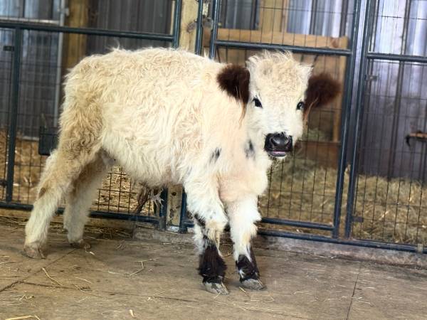 Gorgeous George is a 11 month old miniature Highland bull. He was bottle raised, friendly and is well socialized. He will make a great pet or herd sire. Pick up or delivery available.