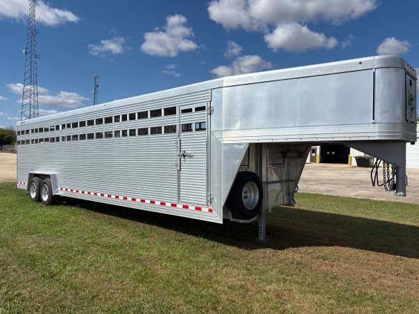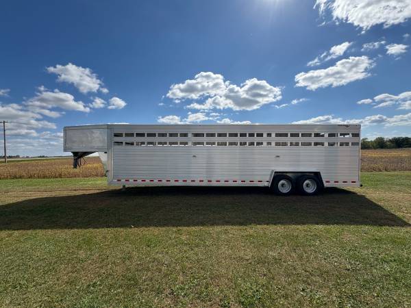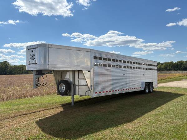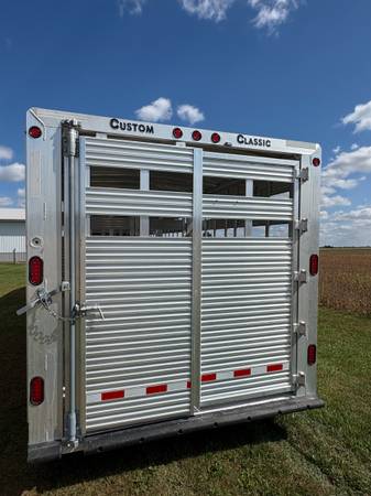 Sale!! Was $40,678 but is now $39,699. Brand New Custom Classic Livestock Trailer. 7'6"Wide x 30'Long x 7'Tall. 2 - 8k Axles with Electric/Hydraulic Brakes. Crimped Floorboards, Spare Wheel, Front Drop sheet Vents, Front Gooseneck Vent, Interior Lights Centered in Each Compartment. It Has 2 Center Gates, The Front Center Gate Has a Sliding Walkthrough Door and The Rear Center Gate Has a Swinging Walkthrough door. Ask About the Warranty on This Trailer. These are Quality Built Trailers. Located in Fairbank, Iowa.