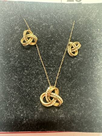 Gold and diamond necklace and earrings Pick up in Jonesboro cash only first come first serve
