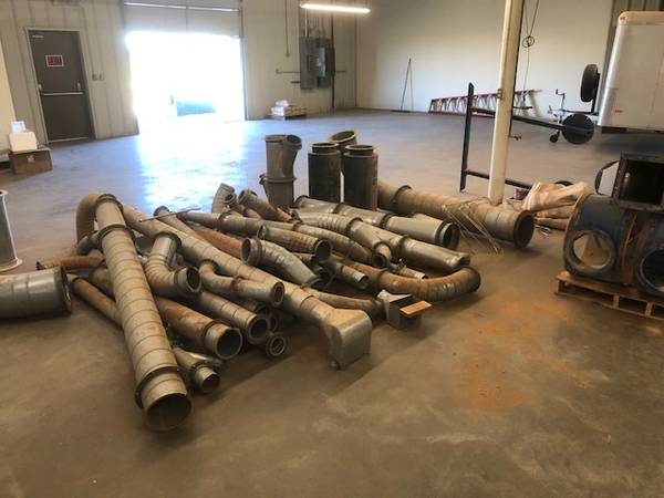 Large lot of metal duct and fittings recently removed from wood dust collection system.