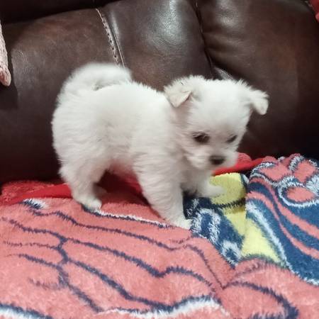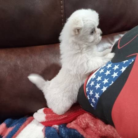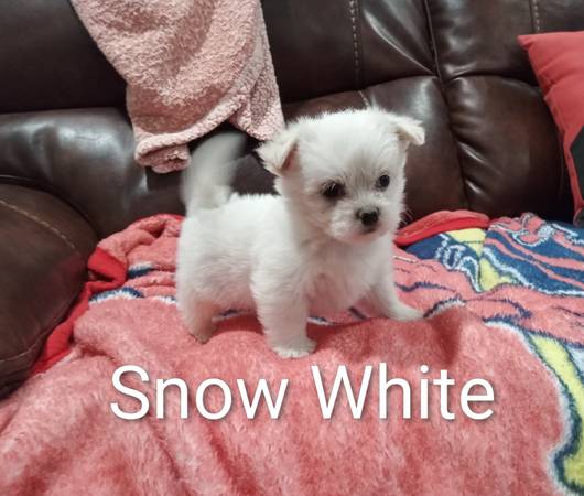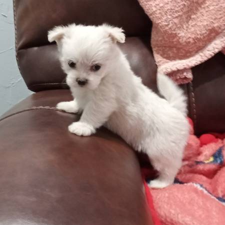 This sweet girl is charting to be 6 pounds grown. She is up to date on shots and worming. She is adventurous and a bit of a drama queen. The Morkie breed is a cross of Maltese and Yorkie and is on the low shed allergy friendly list. Please text Kim for best response