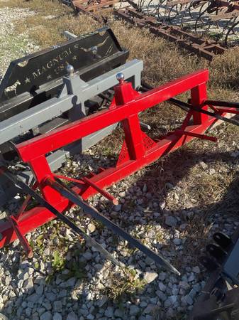 I can load. Will carry two round bales. Never used. 3 pt JD Euro / Global Skid Steer hookup $1250 each.