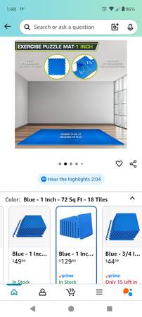 I have a brand new puzzle piece exercise mat totalling 72 sq ft. Brand New is $130!