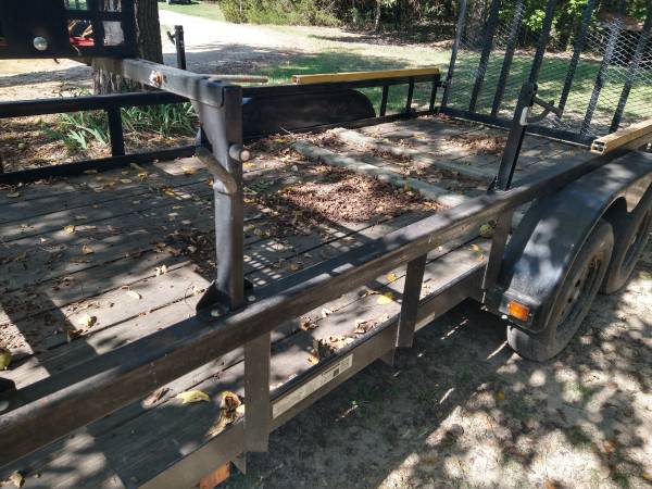 I bought this trailer new from tractor supply and then spent quite a bit of money rigging it up. It is 6 ft 3 inches wide, 14 ft long has square tubing top rail. brakes on both axles. 2 5/16" ball gorilla lift tailgate assist and a jungle Jim landscape basket. I have all the paperwork it does not have a lien I never tagged it so it will be sold with bill.of sale