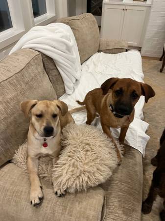 18 month old female puppies. They appear to be Black Mouth Curs. Very sweet temperament and well behaved. House broke and up to date on shots. Free to loving home with small rehoming fee. References...